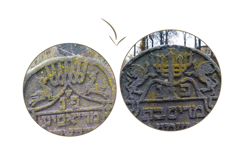 Со временем в сюжетах резного декора намогильных стел мистическое начало постепенно уходит на второй план, уступая место более реальным, человеческим понятиям. Так в изображении льва высокое значение этого символа в итоге могло упроститься до простой иллюстрации имени покойного Арье-Лейб (лев на иврите и идише). Олень мог присутствовать на надгробии Цви-Гирша (олень на иврите и идише) или Нафтали (имя основателя одного из колен Израилевых, символом которого, согласно библейскому тексту, является олень (Бытие 49:21), медведь — на могиле Дов-Бера (медведь на иврите и идише), рыба — на надгробии Фишл, а птица — на памятнике женщины Фейги-Ципоры (птица на иврите и идише). Среди надгробий еврейского кладбища города Глухова таких аналогий выявить не удалось, за исключением одного случая — изображение львов на надгробие человека с именем Иегуда (как сказано (Быт, 49, 9), «Гур-арье (молодой лев) Иегуда»), но этот случай можно считать скорее случайностью, нежели корреляцией между изображением и именем.