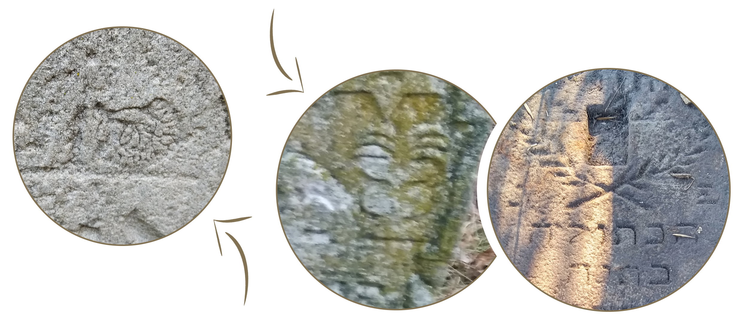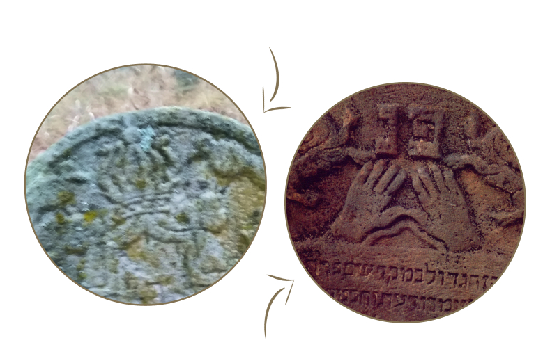 Преодолевая запрет изображать на надгробиях образ человека, мастера часто прибегали к приему, известному как «часть вместо целого», и показывали вместо всей фигуры человека только руки. Это могли быть молитвенно сложенные женские руки с прижатыми друг к другу пальцами, благословляющие руки с разведенными попарно пальцами (родовой знак на надгробиях священников ааронитов — коэнов, при соблюдении ряда ограничений этот статус передавался по наследству от отца к сыну) или руки, держащие кувшин. Кувшин мог быть изображен и отдельно и обозначал почетную обязанность левитов омывать руки ааронитам перед совершением таинства. Надгробие с таким изображением устанавливали на могилах левитов.