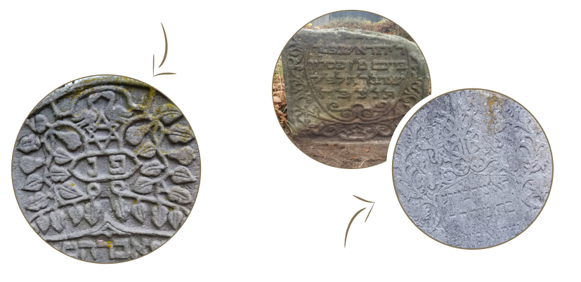 Так же обращают на себя внимание растительные орнаменты еще двух надгробий, перекликающиеся с традиционными видами художественного творчества еврейского народа. В резьбе этих стел много сходного с гравированными титульными листами Библий и орнаментами брачных контрактов (кетуба). Часто находили отражение в орнаментах намогильных плит узоры стенных панно (мизрах), которые выполнялись на стенах, обращенных в сторону Иерусалима и к которым становились лицом во время молитвы. Общие мотивы с резьбой на памятниках присущи храмовому искусству — росписи плафонов и стен, резные деревянные украшения ковчега для Торы и его золотошвейных занавесей, узорчатые металлические элементы люстр синагог и предметов ритуально-бытового назначения.